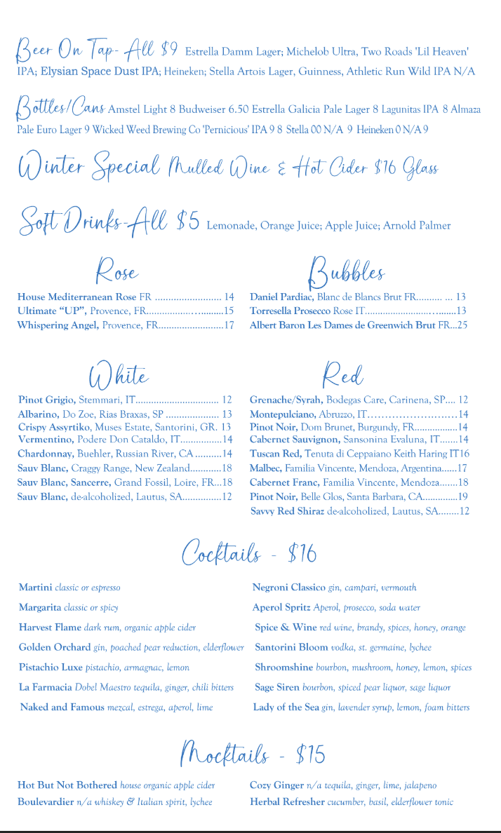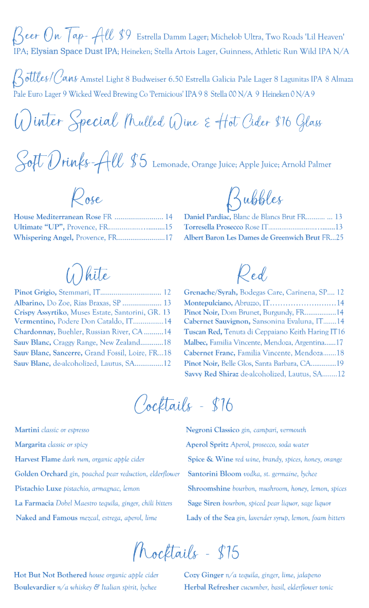 We close the kitchen at 2:30 PM Wed-Fri after lunch and reopen for dinner at 5 PM. On Saturday & Sunday, we are open all day. Brunch service ends at 3:30 PM.